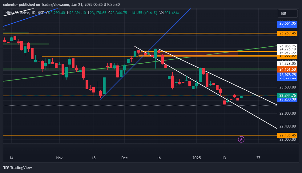 The 23,400 mark remains a formidable resistance level. A breakout above this zone could pave the way for a rally towards 23,530, an essential level for the index. If Nifty manages to sustain above this threshold, we may see further upside momentum in the short term.