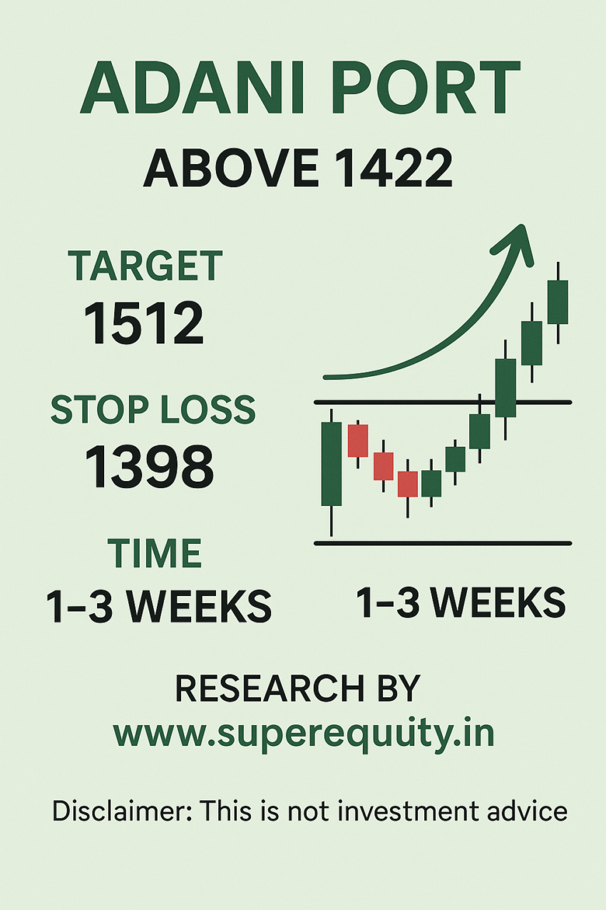 The setup is designed for short- to medium-term traders aiming to capture a ~6% upside within 1–3 weeks. Entry above ₹1,422 ensures confirmation of breakout; the stop loss at ₹1,398 protects downside risk if the breakout fails.